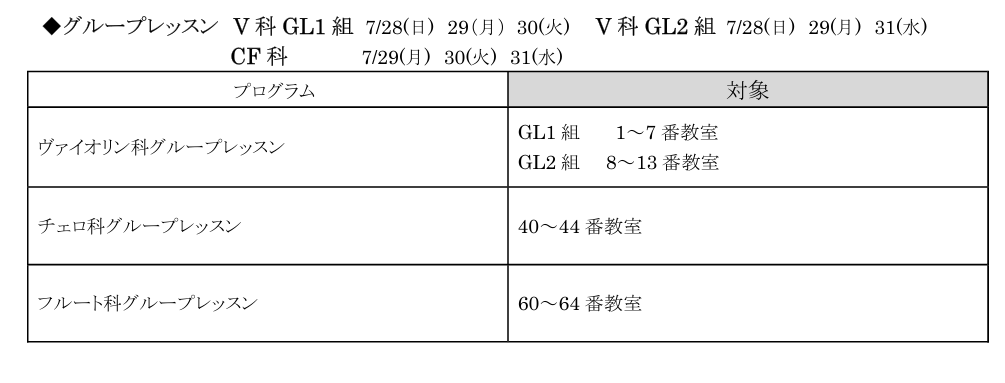 *教室別レッスンや弦楽パートの選択について、必ず事前に指導者と相談してから、参加登録を行ってください。