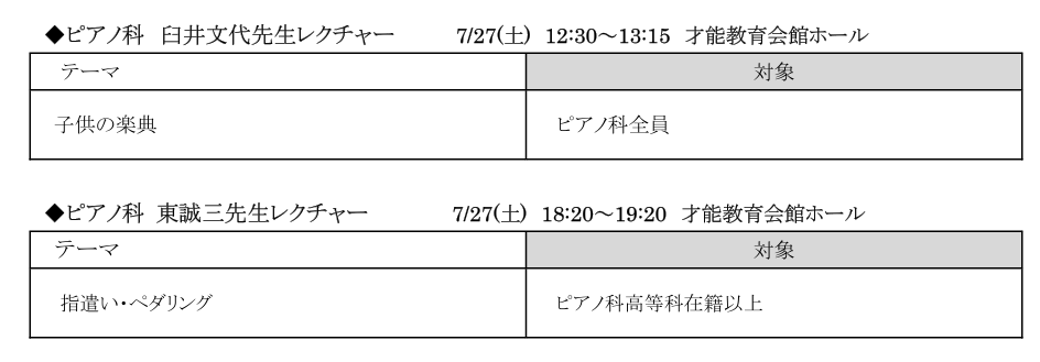 *演奏予定曲目については、夏期学校ホームページでご確認ください。