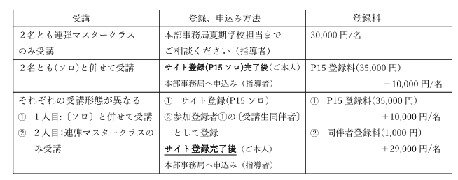 申込み:事務局夏期学校担当summer@suzukimethod.or.jpまで