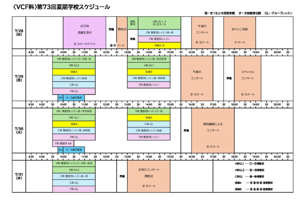 内容:VCF科夏期学校参加生徒全員によるコンサートと閉校式