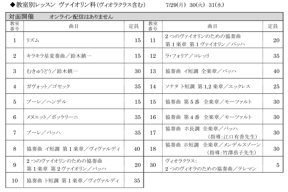 ヴァイオリン科(ヴィオラクラス含む)